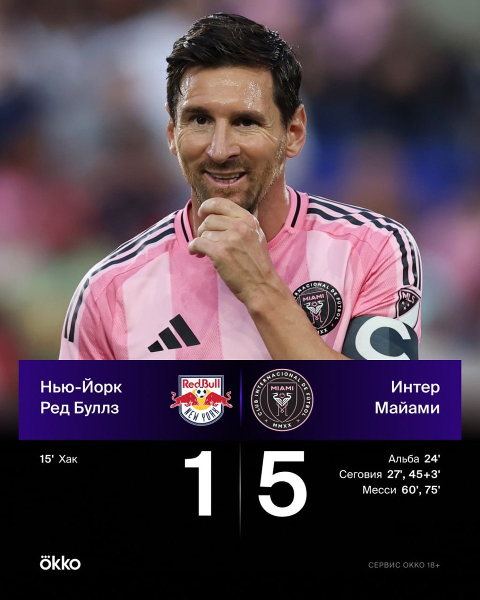 🐐 Папе снова 17. Месси оформил шестой дубль в семи последних матчах MLS.