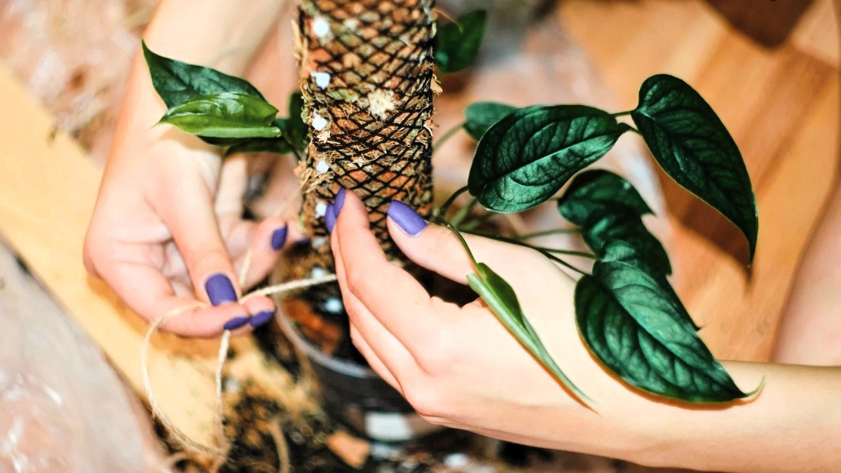 Некоторые растения, например монстера, образуют воздушные корни для опоры. Если кажется, что они могут стоять без подвязки, можно отрезать ленту и оставить стебли без подвязки. Если они шатаются или падают, снова подвяжите их и оставьте на несколько недель или месяцев, прежде чем снова проверить.
