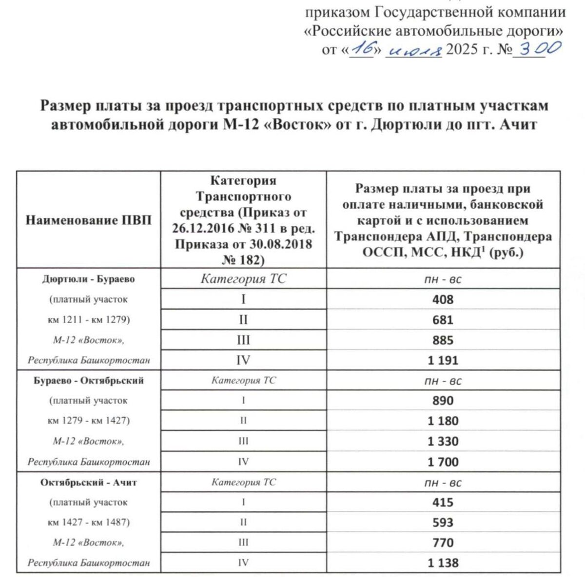 В соцсетях и новостных пабликах с самого момента открытия нового участка трассы М12 активно обсуждают стоимость проезда от Ачита до Дюртюли. Практически во всех пабликах сумма звучит одна и та же: 1713 рублей. Путаница возникла, судя по всему, из-за того, что все складывают суммы, которые обозначены в первом столбце таблицы от Дюртюли до Ачита. Согласны, таблица ужасно неудобная и разобраться в ней не просто. Друзья, мы вчера специально проехали эту трассу и ответственно заявляем: стоимость проезда от Ачита до Дюртюли – 890 рублей (для легковых авто). Именно столько мы заплатили за проезд на пункте оплаты. Этот участок обозначен на таблице как «Бураево-Октябрьский». Для большей достоверности, сегодня мы проверили информацию на сайте Автодора по номеру автомобиля. Никаких дополнительных начислений нет. @zg66
