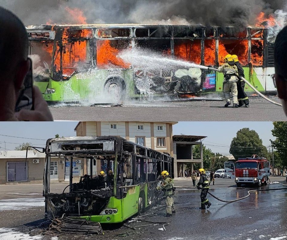 Toshkentda avtobus yonib ketdi