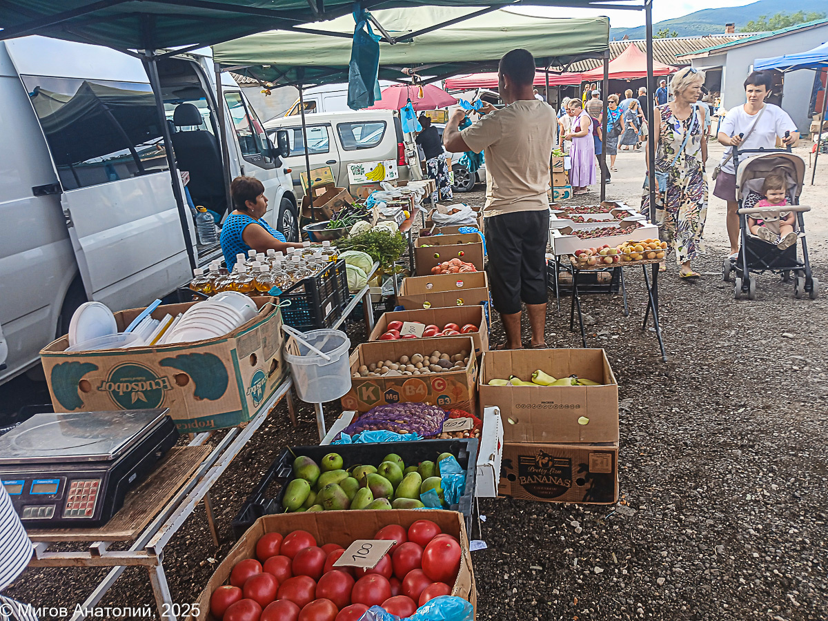 Сначала про наш городской рынок. Как обычно, ещё до восьми утра я уже здесь. Воскресенье - самый торговый день в Старом Крыму. Приезжают частники и фермеры из окрестных сёл, паркуются на рыночной площади, выкладывают свой товар. В основном у них овощи, арбузы и дыни.