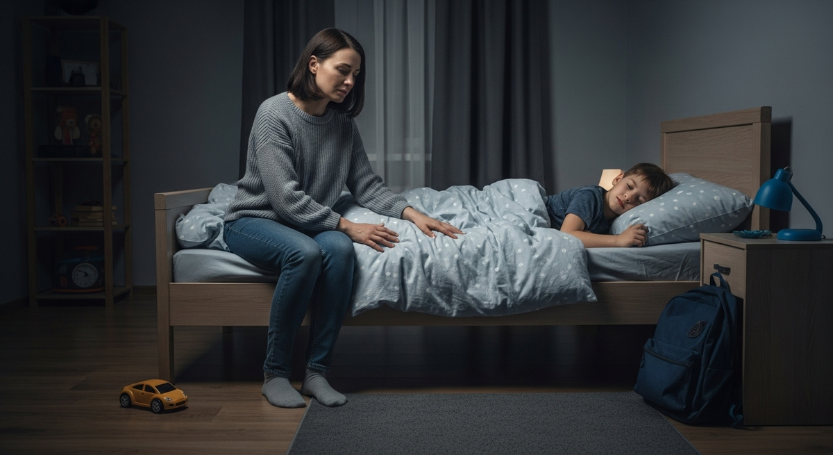 Прошла в комнату. Села рядом с сыном.