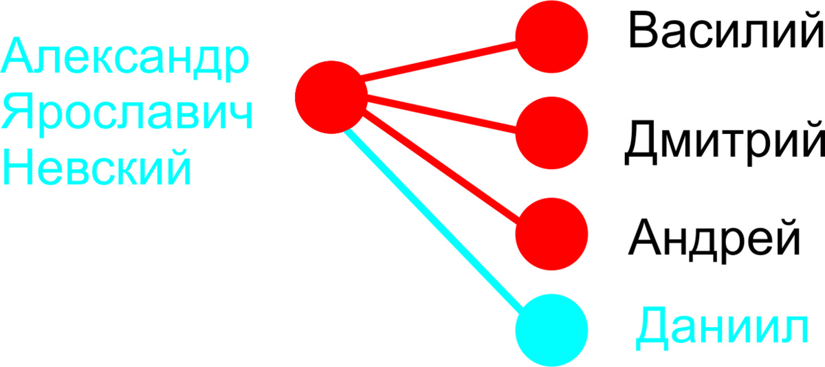 Генеалогия. А вы что подумали? Продолжаем вглядываться в линию, которая ведёт от Рюрика до сына Ивана Грозного. Не переставая удивляться тому, что наследование идёт, практически всегда, не через первенцев. В прошлый раз остановились на Александре Ярославиче Невском, последнем князе Киевском в этой линии.* *-есть, правда, вариант, что младшенький брат Невского, Ярослав, тоже посидел на Киевском столе, но основано сие утверждение на словах поздней, семнадцатого века, Густынской летописи. А она, в одном из списков, вообще утверждает, что Ярослав Ярославич ещё и Литовский князь. Я б такому не доверял. Дальше только хардкор Владимир и Москва. Кстати, вот и пришло время Москвы. Поначалу в ней сидел младший брат Невского, Михаил Хоробрит. Но очень скоро его убила в битве на реке Протве голядь, и Москва снова вошла во Владимирское княжество неотъемлемой частью. До той поры, пока не пришло время выделить удел самому младшему сыну Невского, Даниилу. Даниил Александрович отметился, первое, не п