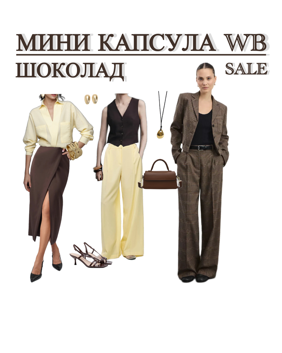 Здравствуйте, дорогие читатели! Сегодня хочу поделиться идеями покупок на распродажах. Наверняка Вы знаете , что сейчас идет масштабный летний sale или попросту распродажа. Это на самом деле отличная возможность обновить гардероб. Но очень часто вместо разумных покупок, мы выбираем футболочки, кофточки или «быстрые тренды». А в итоге на работу ходить не в чем, да и сколько можно этих футболочек??? А можно было так. Я совсем не против футболок, но ведь можно собрать капсулу за очень даже адекватные деньги и носить ее не один сезон, ведь в ней нет скоротечных модных тенденций. А здесь посмотрите ранее собранные капсулы , на позиции из них уже тоже есть скидочки. Жакет- 246037920 Брюки-245295277 Рубашка- 211593156 Юбка- 364711653 Жилет костюмный-370515936 Брюки - 370874056 Или немного видоизменить капсулу- заменить цвет "сливочного масла" на голубой. Сочетание голубого с коричневым это красивое природное сочетание. Но это уже совсем другая история... Возможно, идея для следующей капсул