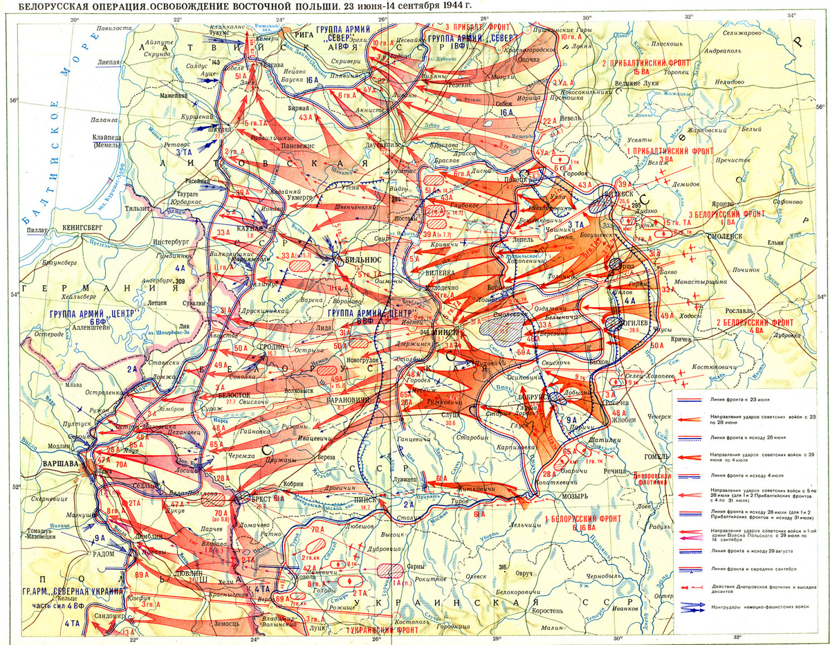 Немцы быстро отходят за Днепр, на позиции по его западному берегу, а также оставляют Витебский выступ. Это означало бы и сокращение фронта и оборону на выгодном естественном рубеже, что позволило бы замедлить советское наступление и избежать окружения немцев в белорусской дуге.