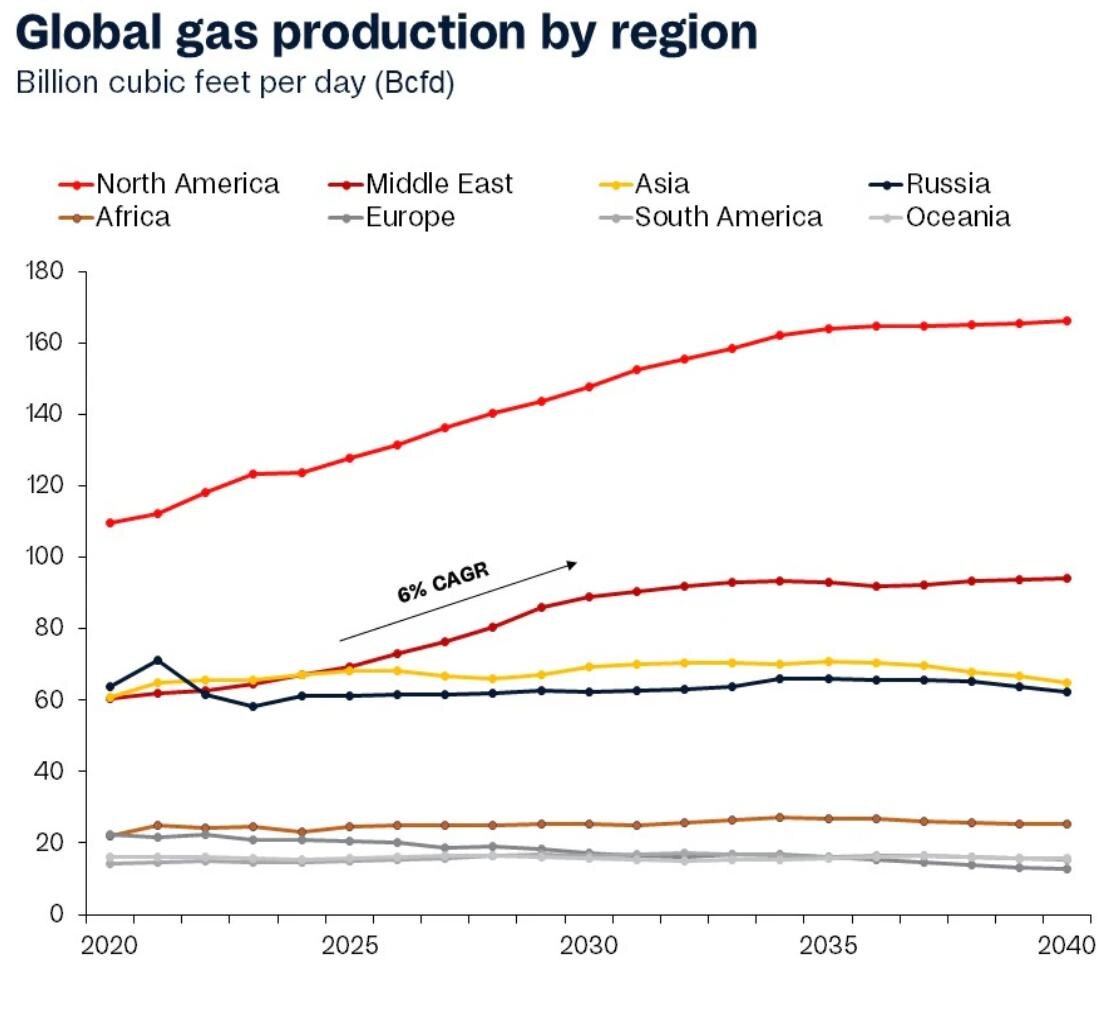 Ближний Восток обгонит Азию и станет вторым по величине производителем газа в мире, уступая только Северной Америке, пишет Rystad Energy