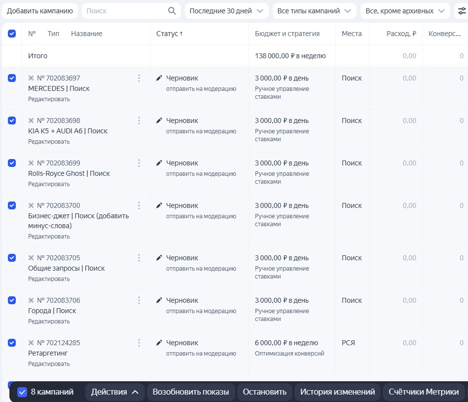 И тут сразу вопрос - как можно запустить качественно проработанную рекламу за 2-3 дня как многие пишут? Тут несколько десятков часов нужно вложить в работу. У нас с коллегой примерно так получается. Ну потому что привыкли качественно работать. Никому же не понравится если к примеру плохо на автомойке ва