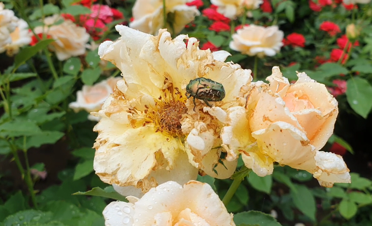 👉 Совет: Если жуков много, вечером полейте почву под розами инсектицидом (например, «Престиж» или «Актара»). На ночь бронзовки зарываются в землю, и там их можно уничтожить.