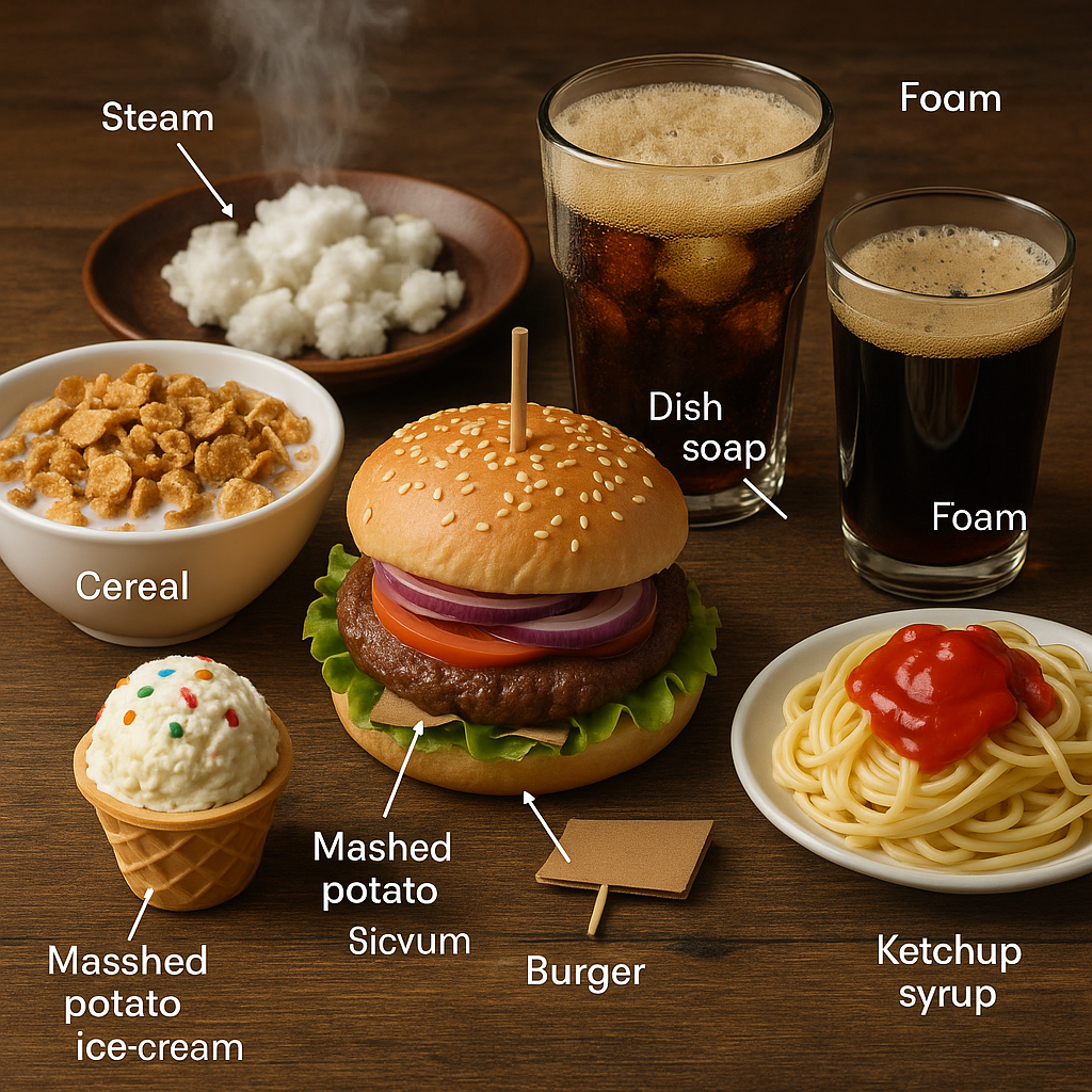 Вы когда-нибудь заказывали бургер из рекламы и получали унылый сплющенный бутерброд, совсем не похожий на идеальную картинку с постера? Это не случайность. В мире фуд-фотографии есть свои законы — и они мало связаны с настоящей едой. В этой статье разберём 8 самых распространённых трюков, с помощью которых маркетологи и фуд-стилисты делают блюда "вкусными глазами". Стейк на фото всегда сочится соком и выглядит чуть ли не живым — потому что он недожарен. Мясо лишь слегка подрумянивают снаружи и смазывают маслом, чтобы оно казалось сочнее. То же самое делают с овощами: слегка обдают кипятком, чтобы сохранить яркий цвет. В кашах, мюслях или кофе вместо молока часто используется… белый клей ПВА. Он не впитывается в хлопья и не даёт им размякнуть. Настоящее молоко быстро превращает блюдо в неаппетитную массу — а фотография должна быть идеальной. Аппетитная пена на кофе, пиве или капучино часто создаётся с помощью капли средства для посуды. Такая пена держится дольше и выглядит "вкуснее", че