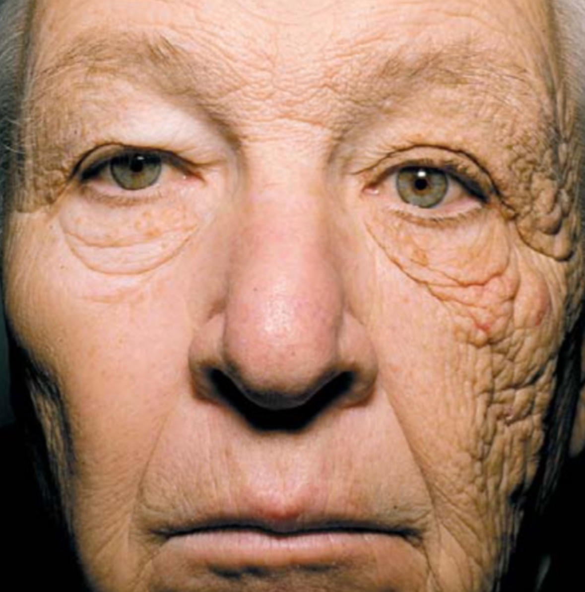 Половина его лица выглядела как у пожилого человека из-за постоянного воздействия UVA.