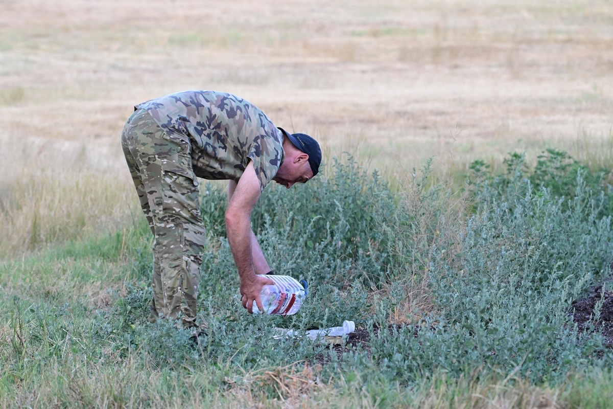 Во время съёмок кобчиков на прошлой неделе мы решили сделать небольшое доброе дело: рядом с лесополосой установили пластиковую ёмкость и наполнили её водой. Казалось бы, мелочь. Но в условиях затянувшейся жары — уже вторая неделя стоит под 35 градусов — даже такая поилка может сыграть важную роль.
