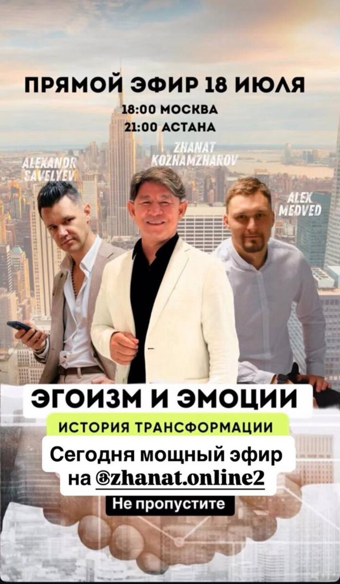 📢 Рекомендуем к просмотру мощный прямой эфир! Тема: ЭГОИЗМ И ЭМОЦИИ 🎙 Ведущий — Жанат Кожамжаров 👥 Приглашённые эксперты — практики и тренеры Syucai Этот эфир стоит посмотреть каждому, кто хочет глубже понять: — откуда берётся эмоциональное выгорание — как распознать нездоровый эгоизм — эгоизм и проявление эмоций на реальном примере — как на самом деле устроены реакции через призму Сюцай — и что с этим делать в реальной жизни 📎 Ссылка на эфир: [https://www.instagram.com/reel/DMQuBmosc0Y/?igsh=MTl4OHQwZW5pOW5saw==] (https://www.instagram.com/reel/DMQuBmosc0Y/?igsh=MTl4OHQwZW5pOW5saw==) Полезно, глубоко, честно. Смотрим и делимся с близкими! 🔥