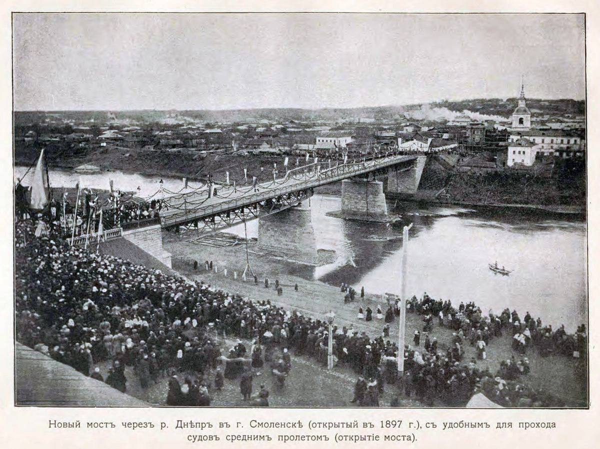 Открытие Железного моста, 12 октября 1897 года. Вид с колокольни надвратной Одигитриевской церкви.