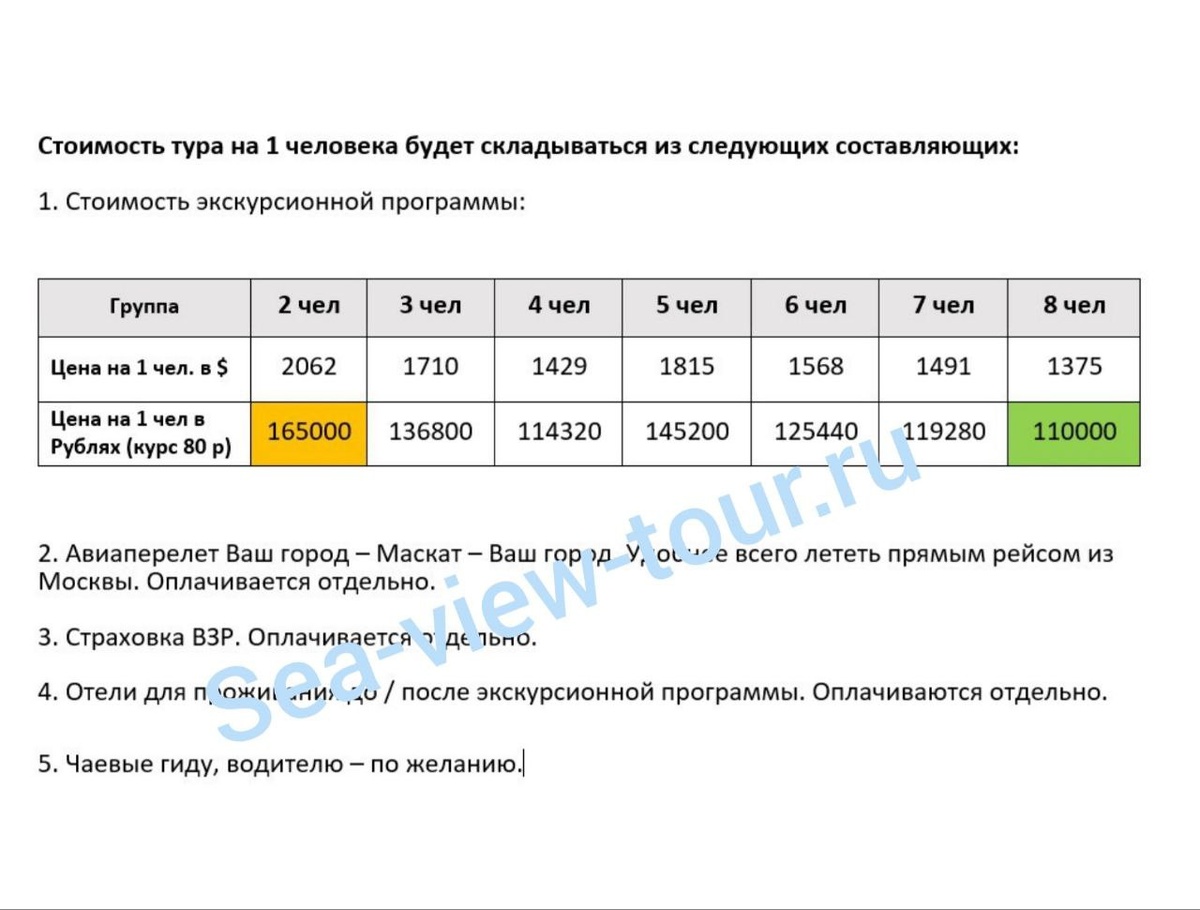 Ловите цены на экскурсионную программу в Омане. 🇴🇲 💰 Для группы с 8 участниками - самая выгодная цена: 110000 рублей с человека. 🗓 Даты тура: с 09 по 16 декабря 2025 года. В экскурсионную программу включено всё: трансфер, входные билеты во все локации по маршруту, сопровождение русскоговорящего гида, проживание в отелях в Низве и у океана, кемп в пустыне, питание. Оплата - по прилету в Маскат. Сразу оплачивается (или бронируется самостоятельно) билеты на самолет, отель до/после экскурсионной Программы, страховка. Если билеты и отели бронируем через меня, то это будет пакетный тур через туроператора. Оставьте сообщение и я вышлю вам программу тура. 😎 #seaview_Оман #Оман