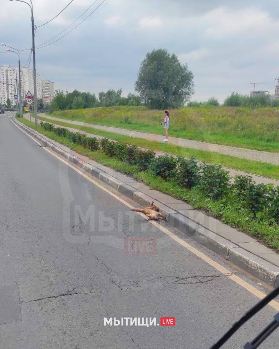 🦊 Город растёт, и дикая природа всё чаще встречается на наших улицах. Сегодня в Мытищах на дороге у бордюра лежала мёртвая лиса.