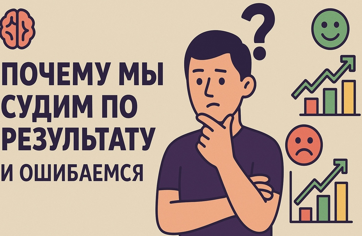 Почему мы оцениваем решение по итогу — и часто ошибаемся Представьте: хирург проводит рискованную, но оправданную операцию. В одном случае пациент умирает — и все говорят: "зачем он это сделал?". В другом — пациент выживает, и тот же врач становится героем. Это — эффект предвзятости к результату (outcome bias): когнитивное искажение, при котором мы оцениваем качество решения не по логике, а по его финальному исходу. 📚 В 1988 году Джонатан Бэрон (Jonathan Baron) и Джон Херши (John Hershey) провели исследование*, подтвердившее этот эффект . 🔬 Участникам описывали ситуацию: врач ставит диагноз и решает ввести экспериментальный препарат от смертельной болезни, чтобы предпринять всё возможное. В двух вариантах истории всё идентично, кроме финала: 📊 Результат? Несмотря на одинаковое качество принятого решения, участники оценивали врача резко негативно при плохом исходе — и восторженно, если всё заканчивалось хорошо. Получаем следующий итог: Мы судим не сам процесс, а результат, игнорируя