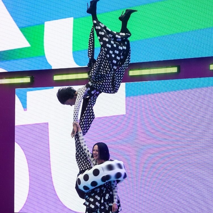 На открытии VK Fest певица Катя IOWA удивила зрителей необычным образом — она появилась на сцене с точной кукольной копией самой себя. Этот творческий эксперимент стал одним из самых обсуждаемых моментов фестиваля. Как рассказала сама артистка, идея костюма родилась из желания переосмыслить знаменитую картину Марка Шагала «Прогулка» 1918 года в современном контексте. Воплотить задумку оказалось непросто. Катя призналась, что работа над костюмом потребовала много времени и усилий: «Накануне были очень веские причины не выходить на дорожку. У нас всегда на каждом этапе были проблемы, потому что на мне очень сложная конструкция, и она переделывалась несколько раз. Такого еще никто никогда не делал». Для реализации проекта артистка привлекла команду талантливых специалистов: «Мы собрали лучших художников Москвы и поняли, что с ними можно делать просто потрясающие вещи». Философию своего образа певица объяснила через призму современной жизни: «По мотивам современности — ты сама себя выгулив