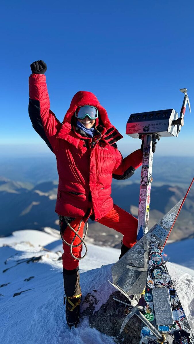 📍Спуск, эмоции и осознание Дневник экспедиции на крест Эльбруса. Часть 2. День 7. Штурм Западной вершины (5 642 м) Мы пофотокались и начали спускаться. И вот навстречу нам уже начали подниматься сотни человек, идущих наверх. Группы, вереницы людей. Потом мы еще час собирали все вещи, палатку, снова паковали наши тяжеленные рюкзаки, чтобы спускаться на Юг, противоположную сторону Эльбруса, чтобы завершить программу Креста. В итоге спускались мы аж 8 гребанных часов! 🥵 Идти было жарко. От веса рюкзака болели подвздошные кости, колени, ноги, ступни — вообще все. С 5 100 пришлось идти по снежной каше, в которую ратраки и снегоходы превращают тропу на Юге. Это было ужасно… 😮💨 Добивающей новостью было то, что канатка "Гарабаши" сегодня не работала, и нам пришлось спускаться пешком до старой станции Мир — до 3 500 м! Я злилась от усталости и того, что ноги уже выключались, стопы и колени болели, а еще идти и идти. Дойдя до станции, я замерла. Играла громкая музыка, дети в шортах и