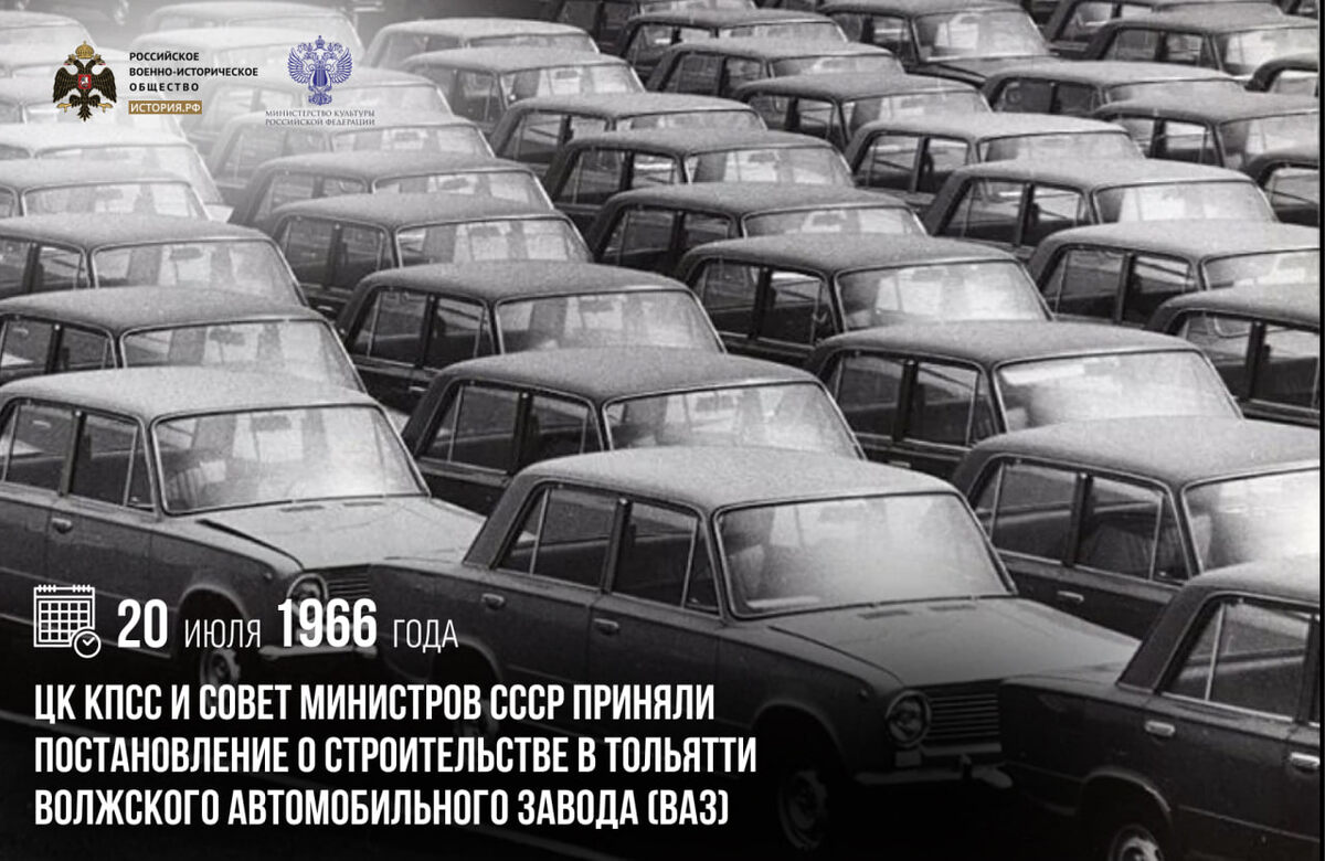 20 июля 1966 года ЦК КПСС и Совет министров СССР приняли постановление о строительстве в Тольятти Волжского автомобильного завода