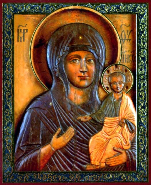 Тут возникает вопрос к искусствоведам, касающийся истинного названия московской иконы. С XVII века она именуется Влахернской. Хотя, как правило, именование «Влахернская» принято относить к изображению Богоматери Оранты, написанной в рост с молитвенно поднятыми руками. В то же время из указаний историков и рассказов паломников известно, что одной из главных святынь Влахернского храма была икона Одигитрии. С переходом императоров на жительство во Влахернский дворец в XIII веке и превращением Влахернского храма в главный монастырь Византии «само название Одигитрии, – пишет Н. П. Кондаков, – могло замениться Влахернскою, тем более что судьбы икон после латинского взятия становятся смутны, и требовалось, может быть, прикрыть переменою имени перемену иконы»[8].