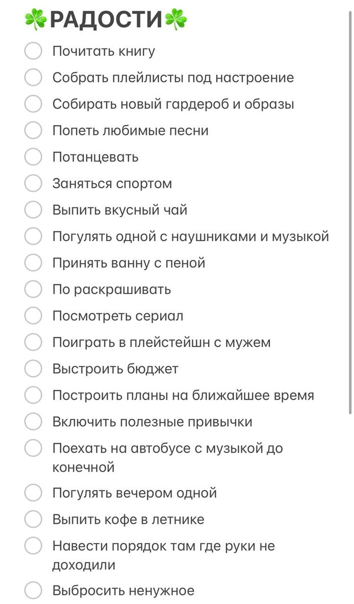 20 июля «Сын уснул, и ты ложись спать», — постоянно говорит мне муж, когда я говорю что не высыпаюсь. Вы че, а пожить для себя? Вечерний чай в тишине попить? Села вот, записала себе бесплатные радости, чтобы развлекать себя и из бюджета не выбиться. 💃 Думаю, начать вести дневник, может продержусь, интересно потом читать через года)