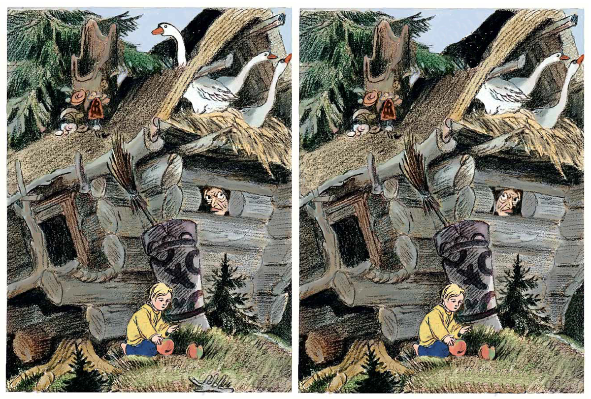 "Найди 5 отличий": проверка себя в любимой игре детства по картинкам к сказке "Гуси-лебеди"