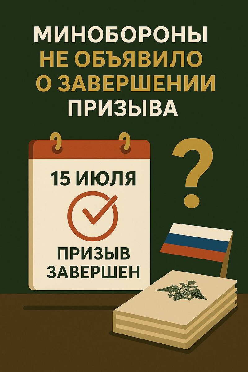 Минобороны не сообщило о завершении призыва. Что это значит? 15 июля официально завершился весенний призыв в армию. Его сроки были определены (http://publication.pravo.gov.ru/document/0001202503310001) Указом Президента РФ от 31 марта 2025 года № 187 — с 1 апреля по 15 июля. Однако Минобороны пока не сообщило о его завершении, хотя в предыдущие призывы регулярно отчитывалось (https://t.me/mod_russia/47371) в последний день. Это вызывает закономерный вопрос: призыв все еще продолжается? #Самаркинразъясняет 📍Согласно Закону о воинской обязанности и военной службе призыв проводится два раза в год с 1 апреля по 15 июля, а также с 1 октября по 31 декабря; Согласно Указу призыв завершен, даже если Минобороны об этом не сообщило, и с 16 июля у военкоматов нет правовых оснований продолжать призывные мероприятия.