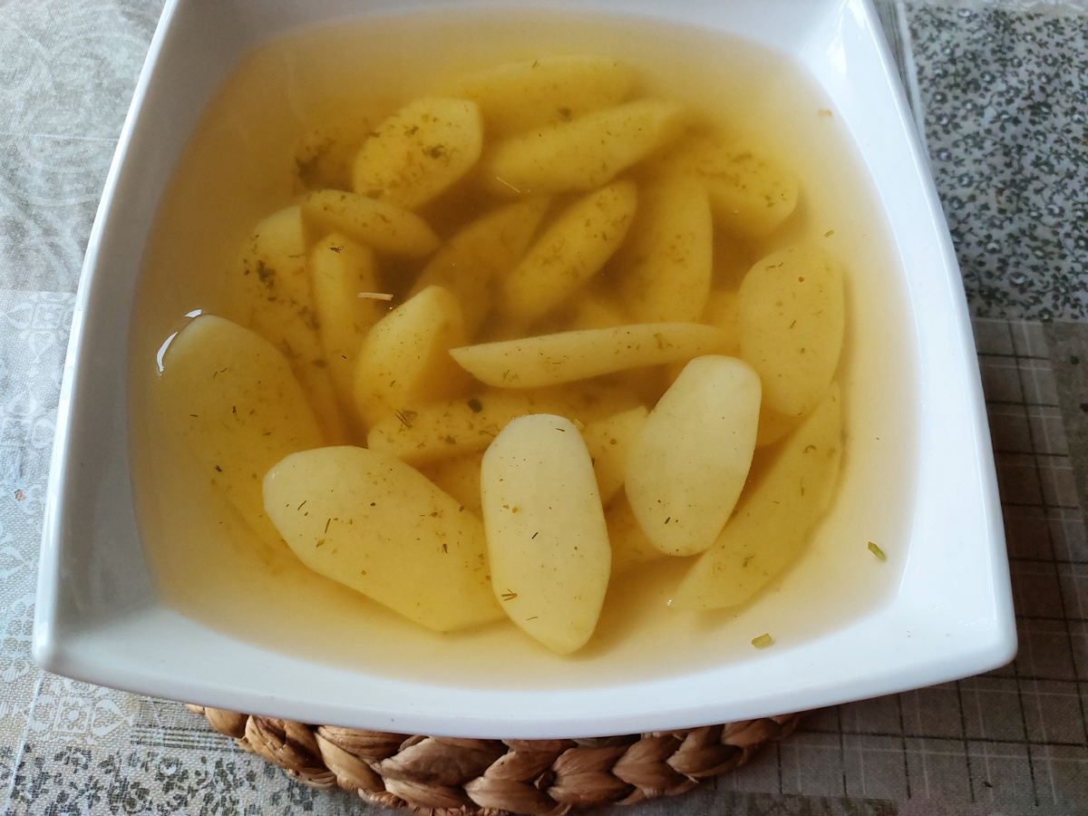 Как не готовить блюда из картофеля, когда есть такой урожай. Не зря мы старались, с семенами носились, пересаживали частично, когда заморозки на ней свой черный след оставили. И вот она, наша красавица, лежит. Не вся еще выкопана, но результат уже радует. Поэтому сегодня, купив к обеду рыбки, я решила, что лучшее к ней дополнение — это блюдо из картошечки. И решила приготовить картофель по-деревенски. И как его не приготовить каналу с таким названием.😁 Тем более, что хотела приготовить в духовке и с румяной корочкой. Сказано — сделано. Нашла рецепт приготовления картошки по-деревенски у популярного блогера. Но в процессе приготовления добавила в него свою изюминку, и получилось не просто вкусно, а шедеврально. Делюсь: - Взяла картошечку сорта «лимонка», почистила и нарезала на ломтики. . - Чтобы ускорить процесс приготовления в духовке, залила кипятком и оставила на 20 минут. ✅Но на этом этапе добавила от себя в воду хорошую столовую ложку грузинской приправы с верхом. В рецепте приг