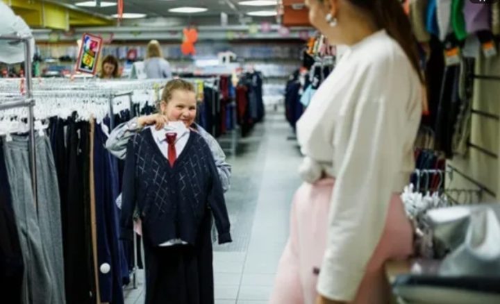 Родители активно включились в школьный шопинг. Елена Карпович пришла в ЦУМ с дочерью-четвероклассницей Вероникой за блузкой, но в итоге корзина пополнилась целым набором вещей, включая одежду для сына.