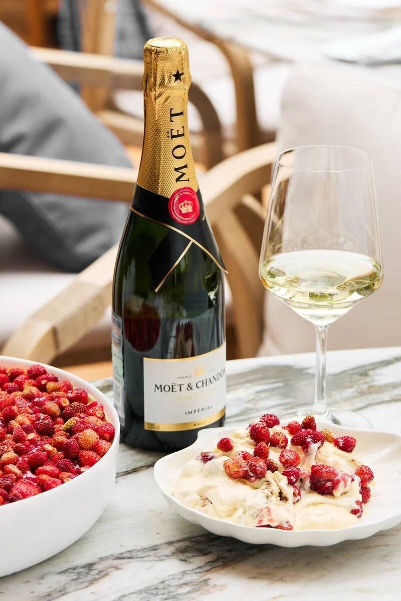 ✔️хочется завершить отличный выходной с этим сетом: тирамису со свежей земляникой и бокал Moët & Chandon за 1990₽