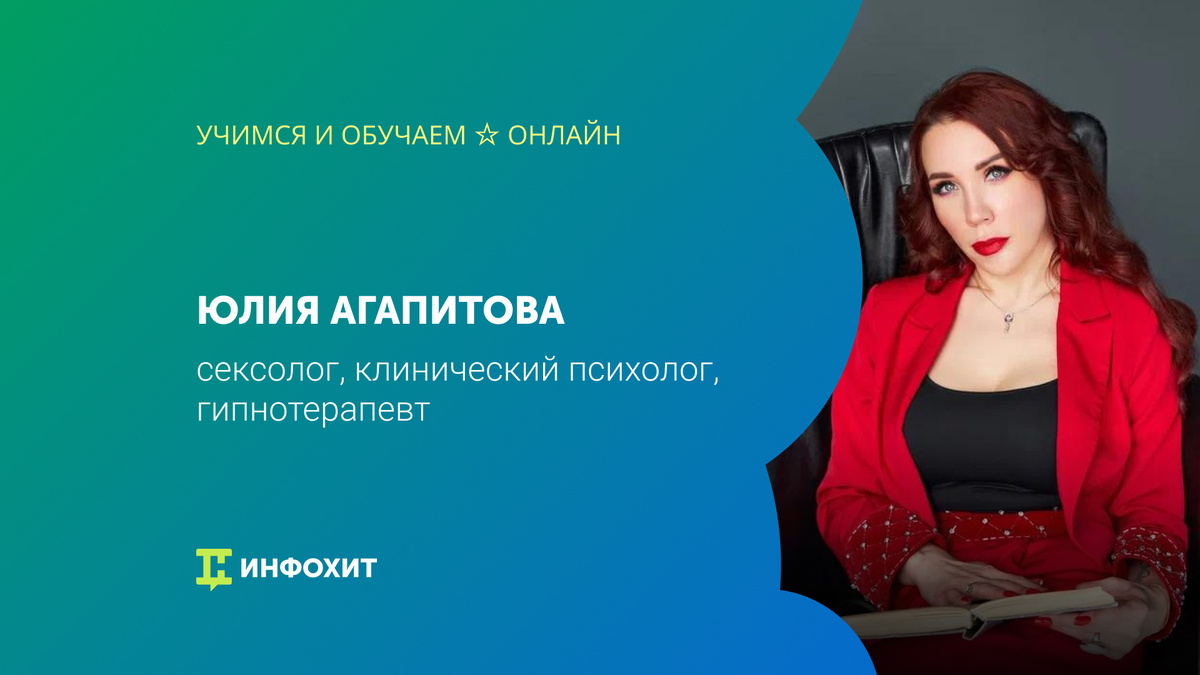 Юлия Агапитова — профессиональный сексолог и клинический психолог с 15-летней практикой. Ее методики помогли тысячам женщин раскрыть сексуальность, улучшить отношения и стать увереннее в себе. Тренинги Юлии Агапитовой для тех, кто хочет избавиться от комплексов и принять свое тело, разжечь страсть в отношениях и понять мужскую психологию. Дата рождения: 10 декабря 1981 года. Место проживания: Россия, г. Санкт-Петербург. Образование: Деятельность: сексолог, клинический психолог и секс-коуч. Достижения: С 2005 по 2010 год Юлия была ведущим психологом в МЧС России. Помогала пожарным и спасателям — организовывала диагностику и оказывала психологическую поддержку. С 2015 года работала бизнес-тренером. Создавала и проводила тренинги на темы позитивного мышления, уверенности в себе, креативности и других. А еще до 2018 Юлия вела частную психологическую практику — проконсультировала более 300 человек. Работала с тревожными состояниями, пищевыми расстройствами, алкогольной зависимостью, взаимо