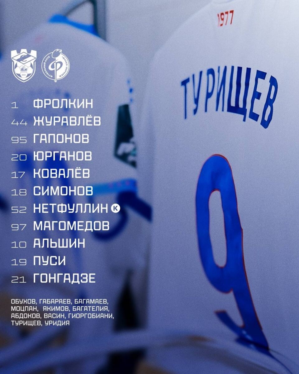 Воронежский «Факел» начинает матч первого тура Первой лиги против костромского «Спартака». Игорь Шалимов выставил следующий стартовый состав: Фролкин, Журавлёв, Гапонов, Юрганов, Ковалёв, Симонов, Нетфуллин, Магомедов, Альшин, Пушилин, Гонгадзе.