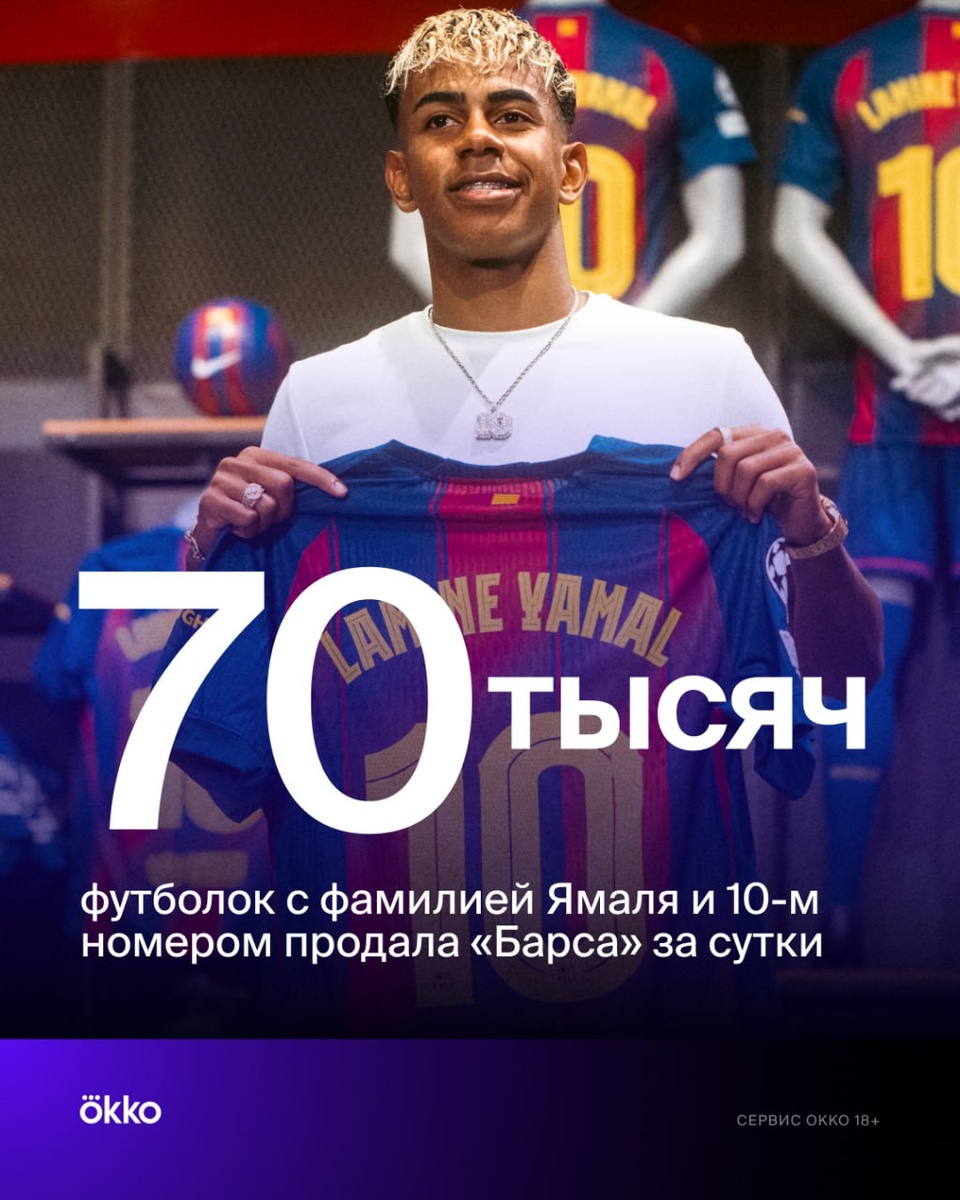 👕 «Барса» хорошо заработала на новом номере Ямаля. И установила рекорд. Клуб за 24 часа продал аж 70 тысяч футболок с десяткой. COPE сообщает, что каталонцы выручили примерно €10 млн. Коммерческий успех превзошел все прогнозы клуба. Б — бизнес.