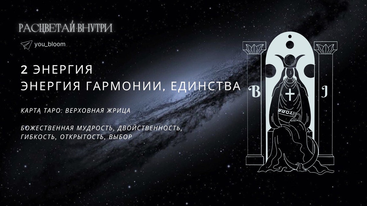 Гармония. Единство. Чувствительность. Карта Таро: Верховная Жрица Ключевые качества: божественная мудрость, двойственность, гибкость, открытость, тонкий выбор Кому подойдёт эта статья: — всем, у кого энергия 2 есть в Матрице Судьбы — тем, кто родился 2-го числа любого месяца или в феврале 🌿 Кто вы, если ваша ведущая энергия — 2? С детства у вас проявлена дипломатичность, способность сглаживать острые углы в общении и тонко улавливать настроение других. Вам дано чувствовать то, что не видят другие, подмечать нюансы, замечать тени и смыслы, скрытые за словами. Это энергия глубокого внутреннего мира, мягкости, способности быть «вторым номером» — не потому что вы слабы, а потому что умеете поддерживать и усиливать других, как тихая сила. 🕊 Особенности энергии: — Скромность и осторожность, не спешите проявлять свои таланты — Гибкость и умение видеть ситуацию с разных сторон — Способность успокаивать, исцелять, давать мудрые советы — Чувствительность к энергетике людей и мест — Тяга к п