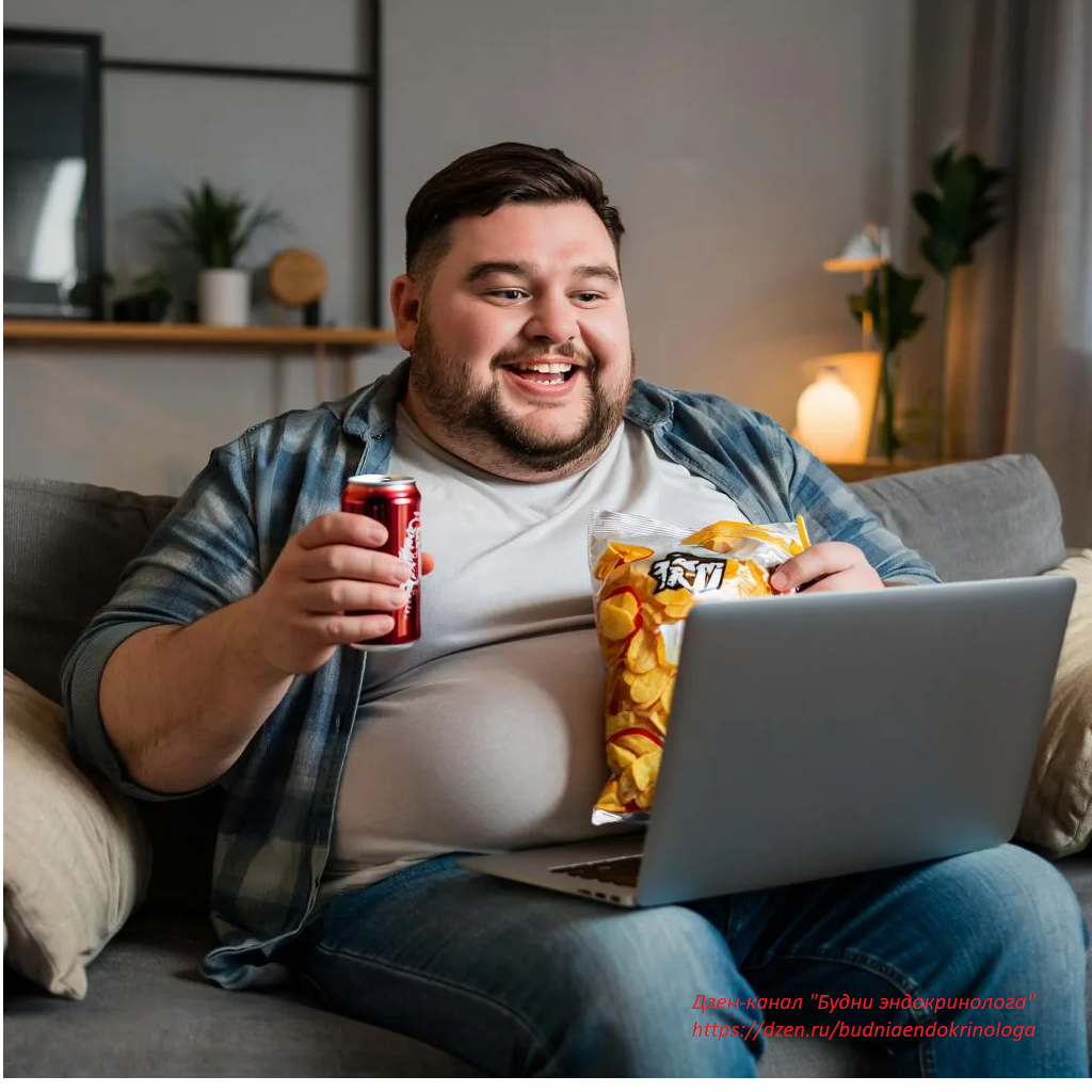 - Результат: Жир откладывается в первую очередь на животе (висцеральный жир — самый опасный).