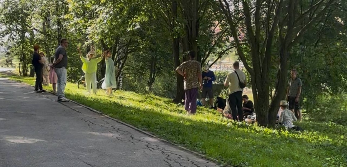 В субботу Секта Харе Кришна пела песни в парке Оккервиль