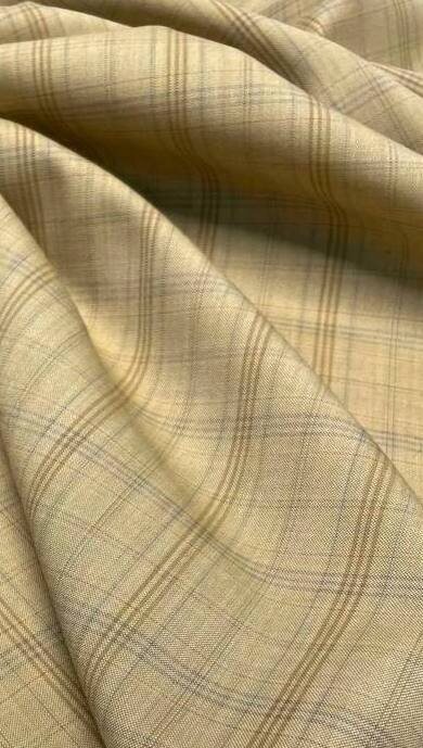Костюмно-плательная шерсть теплого оливкового оттенка с вплетением коралловых и голубых нитей