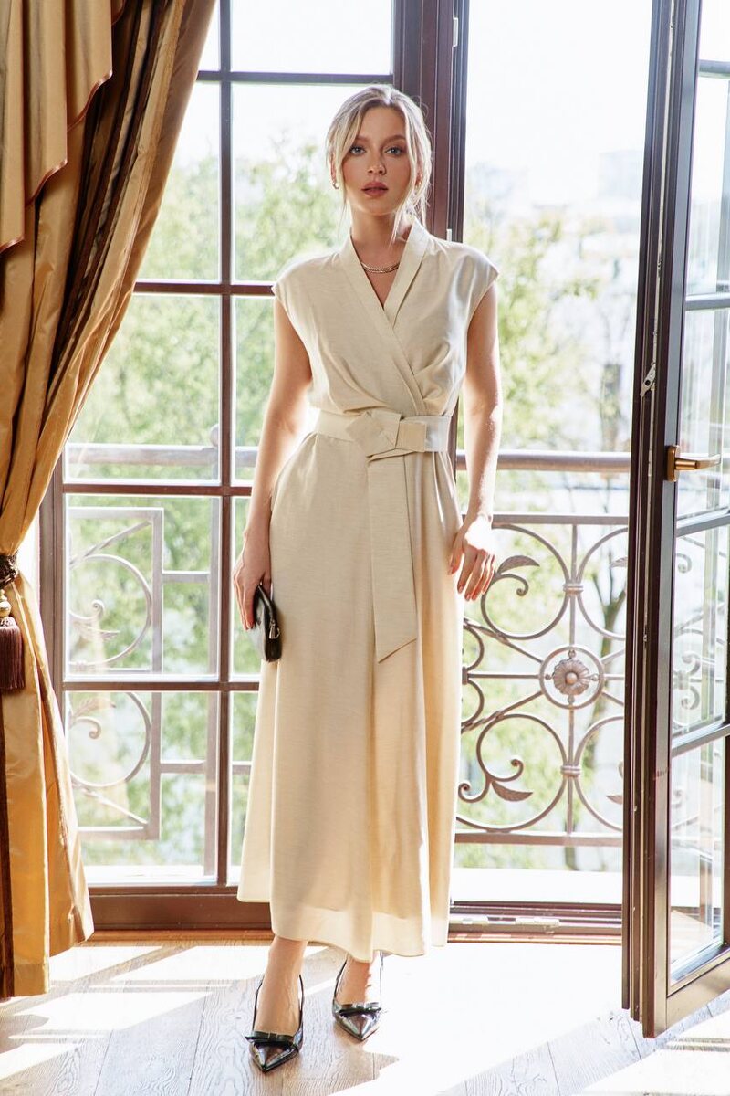 Наше новое платье – это воплощение мечты о красоте и изяществе, созданное для тех, кто стремится к гармонии и совершенству. Мягкий оттенок слоновой кости, словно лунный свет, придает образу загадочность и романтичность. Грациозный силуэт подчеркивает достоинства фигуры, а деликатный пояс акцентирует внимание на талии, создавая женственный и утонченный образ. Дополните образ изящными аксессуарами и легкой улыбкой, и мир откроет перед вами свои объятия. онлайн заказ: kiara-onda.by оффлайн магазин: г. Брест, ул. Гоголя, 59
