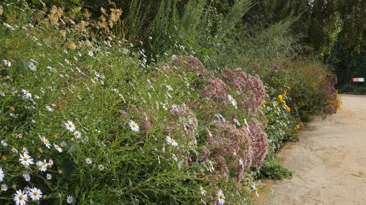 Иногда смотришь на собственный сад, а то и на выставочный и понимаешь, что часть растений еще несколько лет назад не могла себе представить на участке, за которым следят. Вот, например, посконник. Я его видела иногда за заборами, но не представляла себе, как он может украсить сад пока не восхитилась его благородством в Аптекарском огороде: С тех пор два вида посконника радуют меня с августа и до завершения сезона. Горцы - группа растений, которые никогда не попадали в мой фокус внимания. Когда я увидела горец изменчивый впервые, мне сказали, что это волжанка. Так я его и запомнила. Позже я поняла, что то, что я хочу - горец изменчивый и подруга к моему позапрошлому дню рождения его нашла. В прошлом году он был красив и скромен, а в этом раскрылся во всей красе. Два месяца с июня он был просто великолепен. В августе метелки отцвели, но все равно сохраняли форму и изящество. Удивляюсь, почему так поздно его заприметила. Цветок простых дач. Красная монарда, пламенные лепестки. Она выгля
