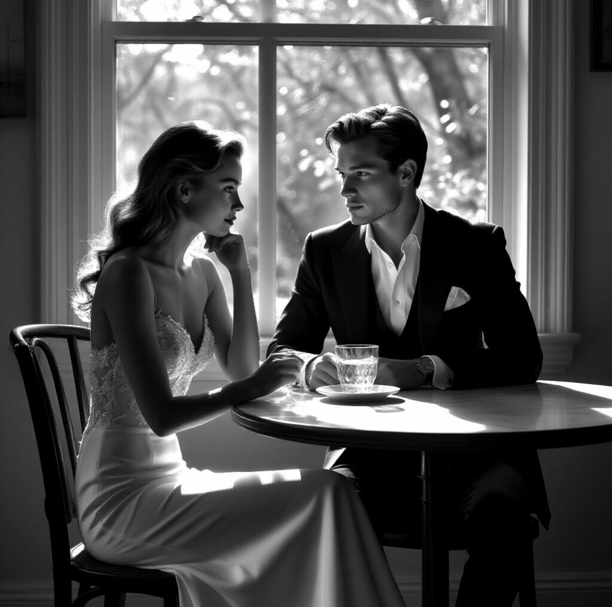 Руки дрожат. Я открываю… и на ладонь падает фотография. Чёрно-белая, чуть смазанная, как будто сделана украдкой. На ней — я. Моя кожа под лампой кажется стеклянной и тонкой, будто не настоящая… Рядом — мужчина. Лицо едва видно, только застекленные, потухшие глаза и плечи, сутулые, какие бывают поздней осенью, когда всё рушится. Дата и аккуратная надпись в углу: 23:15. Начало.