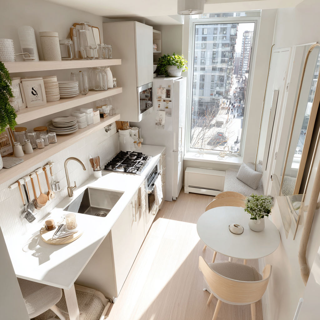Маленькая кухня не приговор – с правильными приёмами вы почувствуете свободу пространства даже на 6 м². Сохраняйте этот чек-лист и берите его с собой при планировании ремонта! 🔹 1. Светлые оттенки и отражающие поверхности