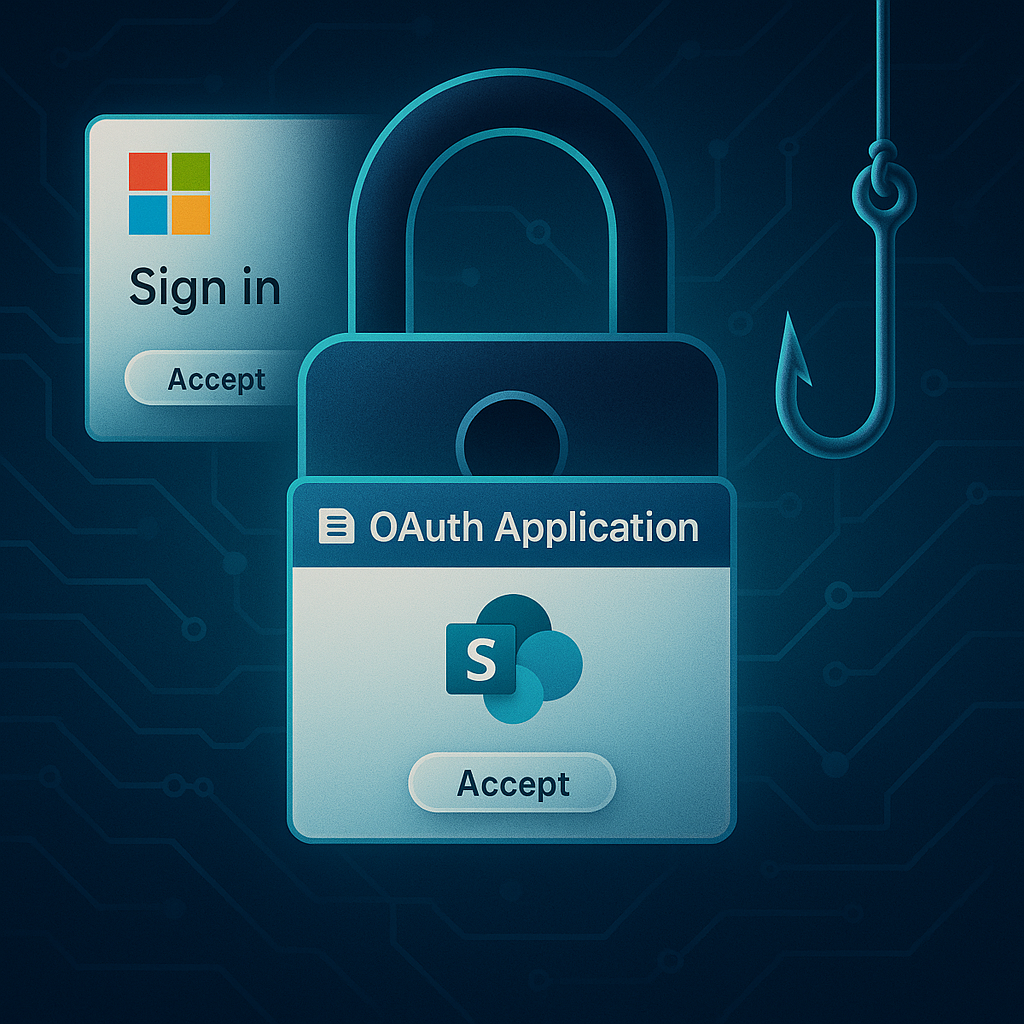 Исследователи из компании Proofpoint обнаружили хитроумную фишинговую кампанию, в которой киберпреступники научились обходить многофакторную аутентификацию. Вместо традиционных фишинговых страниц они создают поддельные приложения Microsoft OAuth — те самые, которые обычно используются для интеграции с Microsoft 365, Teams, OneDrive и другими облачными сервисами. При этом внешне эти приложения выглядят вполне легитимно: знакомые логотипы, аккуратные формулировки, имена, вызывающие доверие — SharePoint, DocuSign, Adobe. Жертве приходит письмо с предложением авторизовать доступ. На первый взгляд — ничего подозрительного. Запрашиваются стандартные разрешения, вроде доступа к профилю или файлам. Пользователь нажимает «Принять», и в этот момент запускается схема, в которой задействованы целые фишинговые комплекты. Жертва попадает на поддельную страницу входа Microsoft — через CAPTCHA, чтобы исключить автоматическое сканирование. После ввода логина и пароля происходит перехват не только данны