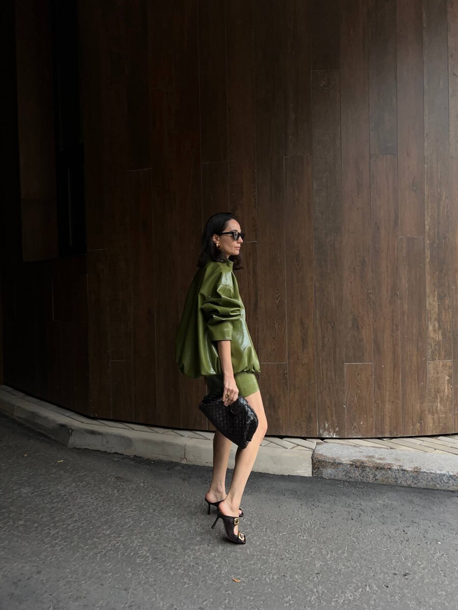Оттенок, вдохновленный природной палитрой будущего сезона. Акцентный дуэт — объемный бомбер и платье мини из лакированной кожи с глянцевым эффектом. Ищите новинки на сайте и во всех магазинах 1811 💚 Платье скоро в продаже.
