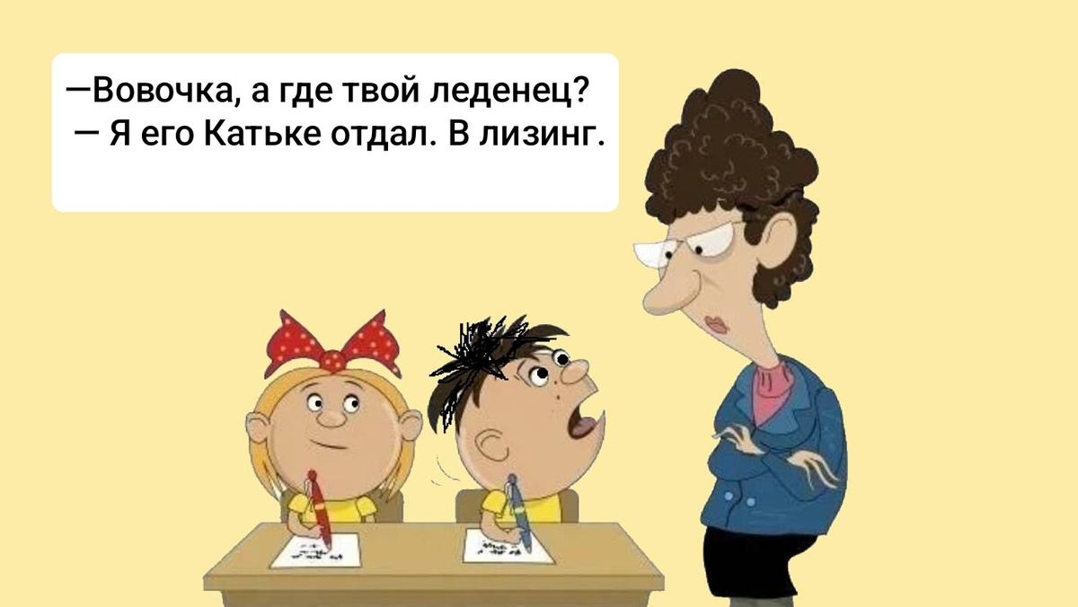Учительница в школе предлагает детям придумать предложение в коротом слово "прекрасно" употребляется дважды. — Маша: " Вчера папа купил маме прекрасное платье в котором мама прекрасно выглядела". — Петя: " Моя бабушка готовит прекрасное печенье которое я прекрасно кушаю ". .... — Вовочка: " Вчера за ужином моя сестра обьявила что беременна, а отец сказал — прекрасно, б%%%ь, прекрасно!" *** — Вовочка, что нам дает курица? — Яйца. — Вовочка, ну все-таки, подумай, что мы имеем с куриц? — Много яиц. — Ну ладно. Вот ты на чем спишь? — На полу. — А под голову что кладешь? — Валенок. — Ну ладно, подойдем к делу с другой стороны. Твой папа на чем спит? — На маме. — А если мамы дома нет? — На соседке. — А если соседки дома нет? — Тогда и папы дома нет. — Ну ладно, подойдем к делу с другой стороны. Твой дедушка на чем спит? — На кровати. — А под голову что кладет? — Подушку. — А если по подушке ударить, что будет? — Пыль. — А если сильно ударить? — Клопы. — А если взять нож и распороть подушку,