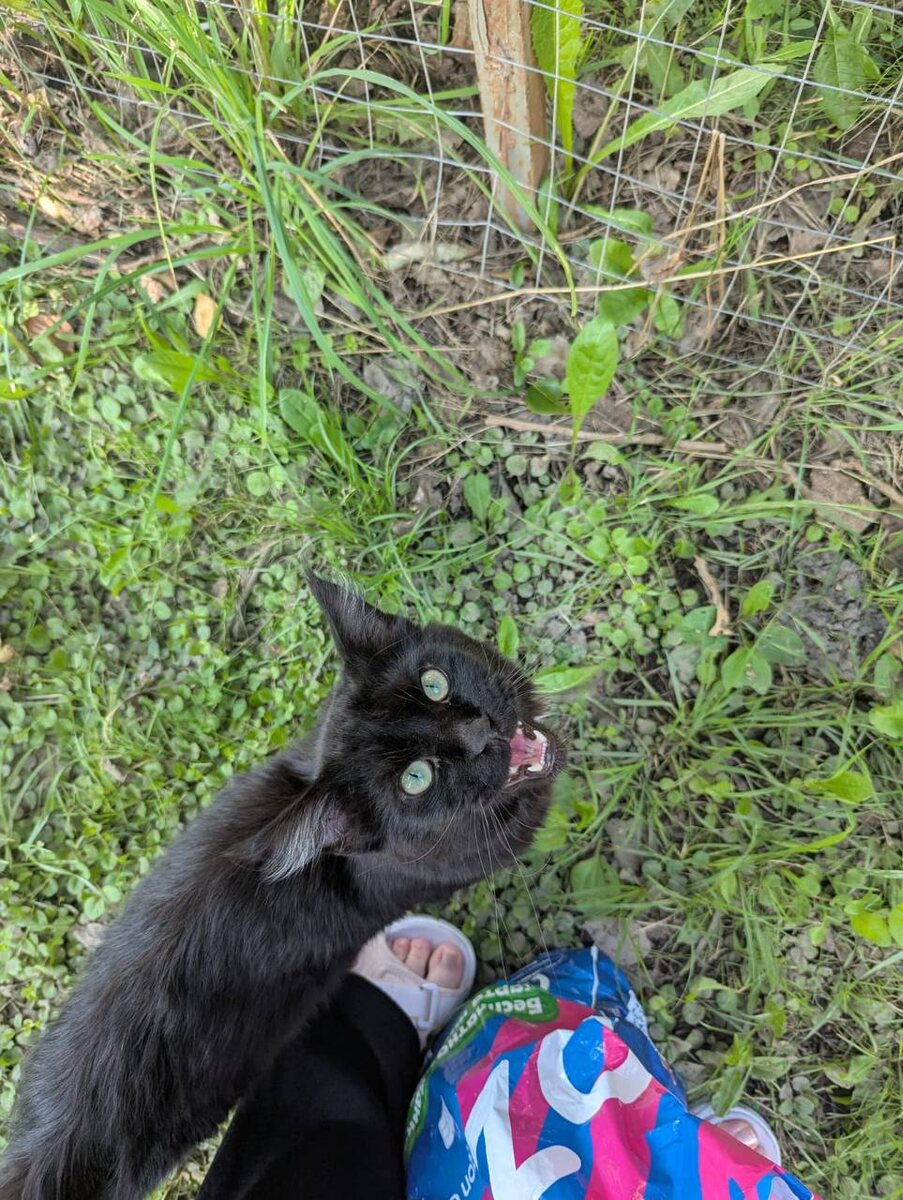 Подбросили к местным бездомным кошкам мейн куна, худой, грязный, очень ласковый