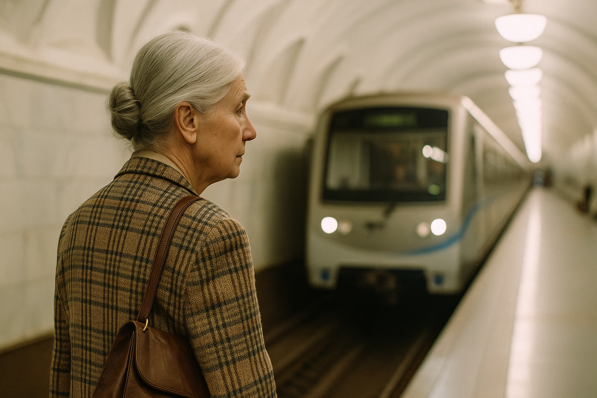 И вот вчера. Обычный день. Москва. Жаркий август. Я спускалась в метро на Краснопресненской. Время — 17:48, я посмотрела на часы, потому что ждала звонка от заказчика. Люди шли навстречу — поток, лица, тени. Я почти прошла мимо, когда увидела её. Стояла у стены, держала старую сумку, как из фильмов 70-х. Пальто в клетку. Волосы, убранные в тугую булочку. Тонкие губы. И глаза. Те самые. Серо-зелёные, с настороженным взглядом, как на старых фото, что мама прятала в коробке.