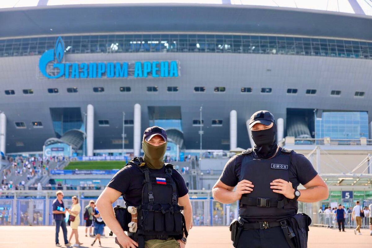 ⚽️ В Санкт-Петербурге на стадионе «Газпром Арена» военнослужащие 33-й бригады оперативного назначения Северо-Западного округа Росгвардии, сотрудники ОМОН «Бастион», ОМОН «Балтика» (на транспорте) и вневедомственной охраны Росгвардии обеспечивают безопасность тысяч футбольных болельщиков матча РПЛ между местным «Зенитом» и московским «ЦСКА».