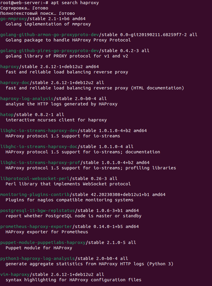 Предположим, мы хотим установить haproxy. Для начала посмотрим, есть ли он в наших библиотеках: