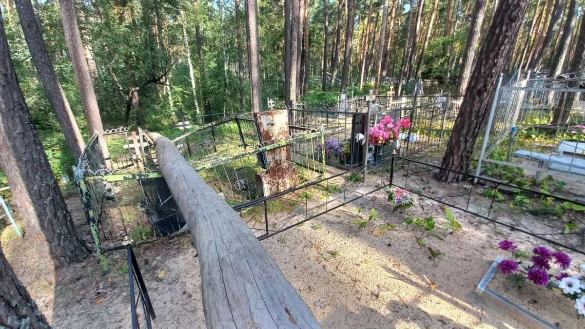 Стволы деревьев продолжают падать на Графском кладбище в Воронежской области