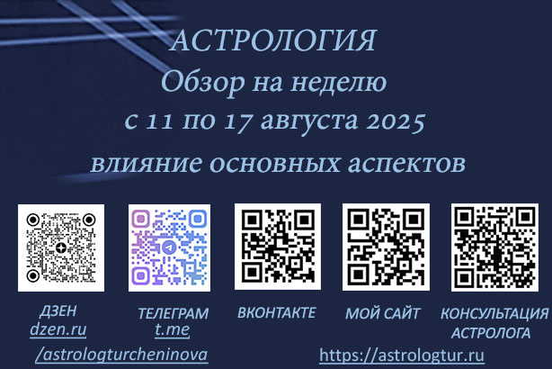 Обзор на неделю, влияние основных астрологических аспектов с 11 по 17 августа 2025
